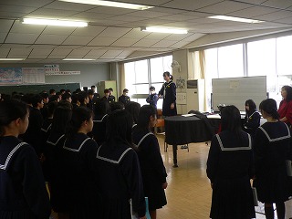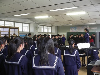 1,2年生は学年末テスト中ですが、3年生は今日の2限目、卒業式に向けての合唱練習をしていました。あと卒業式まで残り1週間余りとなりました。なかまと過ごす学校での残りわずかの時間を大切にしてくださいね。卒業式での合唱を楽しみにしています。
