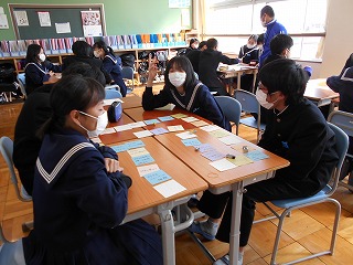 「すごろくトーキング」を行いました。いろいろなジャンルの質問に、少し照れる場面もありましたが、大変盛り上がりました。3年生になっての初めてのグループ活動。クラスの仲間の新たな一面を見ることができましたね。この仲間で協力し、みんなで良い一年にしていきましょうね。