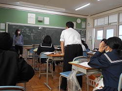 本日5限目に道徳をしました。「オーロラの向こうに」という話を題材に、自然に対する畏敬の念について学習しました。最近は気温も下がり、鈴鹿山脈が白くなっています。そのような美しい風景に、ふと気づくことができる心を大切にしたいですね。