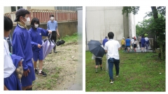 ということで、保々小学校のたけのこ学級のみなさんをお迎えして、傘を差しながら芋ほり大会スタート!!