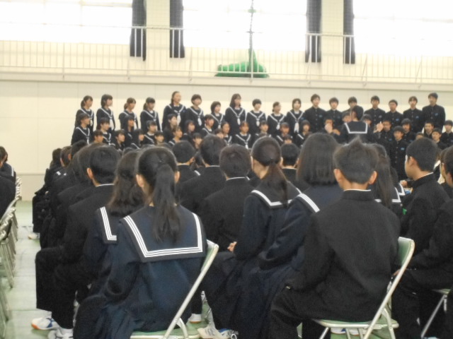 校長先生からは、人間性や人間力を高め、人の価値を互いに大切にしながら学力や体力をつけていこうと話されました。新入生代表の誓いの言葉では、大きな声で力強く宣言する姿に感心しました。そのあと、3年生の歓迎の歌を送りました。さすが保々中の3年生。中学生らしい見事な合唱を披露してくれました。