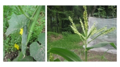 他の野菜の生育状況は、トウモロコシは花が咲き、きゅうりも収穫が始まりました。