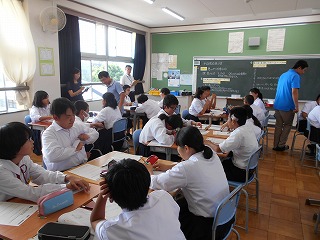 10月1日(火)、教育委員会指導課の生川先生と人権プラザ小牧の松長先生を助言者にお招きして、道徳の授業について授業研究を行いました。5限目は1Aで西村先生により、「不自然な独り言」を教材に、思いやりについて考え合いました。6限目は3Aで水谷先生により、「ハゲワシと少女」を教材に、かけがえのない命について考えました。どちらの授業も、グループでの話し合いを交えながら、考えを深めていきました。一生懸命考えている姿が印象に残りました。授業後、授業の振り返りを教員で行い、助言者の先生の話も聞かせていただき、よりよい授業のあり方について、学習することができました。