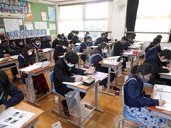 6限目に高校調べをしました。一人一人が担当の学校を決めて、それについて調べています。今日は高校パンフレットを参考に調べました。卒業後の進路にはどんなものがあるのか、これから勉強していきましょう。