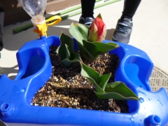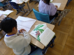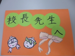 朝の会の時には6年生が1年生からプレゼント(手作りペンダント)を首からかけてもらっていました。