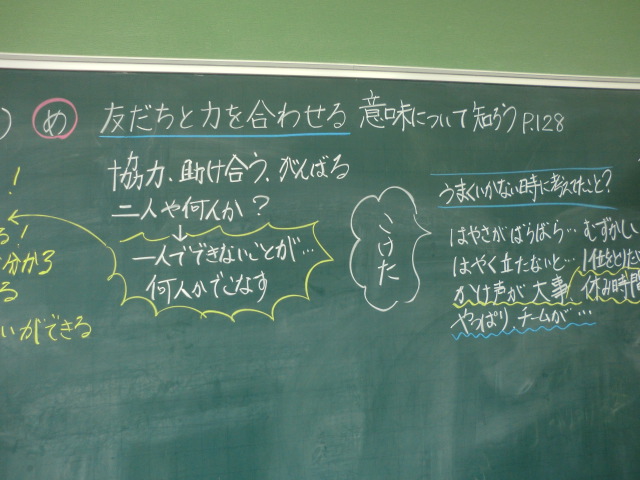 との発言につながっていきました。「力を合わせる」ことを、この後も深く掘り下げて考える3年生の姿がありました。