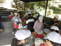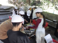 野菜を切ったり、米を研いだりする調理チームと、窯で薪を組んだりするかまどチームに分かれ作業をしました。