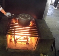 また、かまどチームは、薪の組み方を工夫しながら、空気の通り道を意識しながら、四角形や三角形の思い思いの薪組みをしました。
