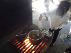 出来上がったカレーをおしいく食べた後は、協力をして窯の掃除をしたり、食器や鍋を洗ったりしました。