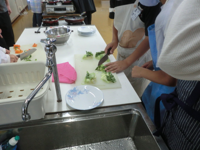 6年生家庭科「調理実習」。献立は野菜炒め。