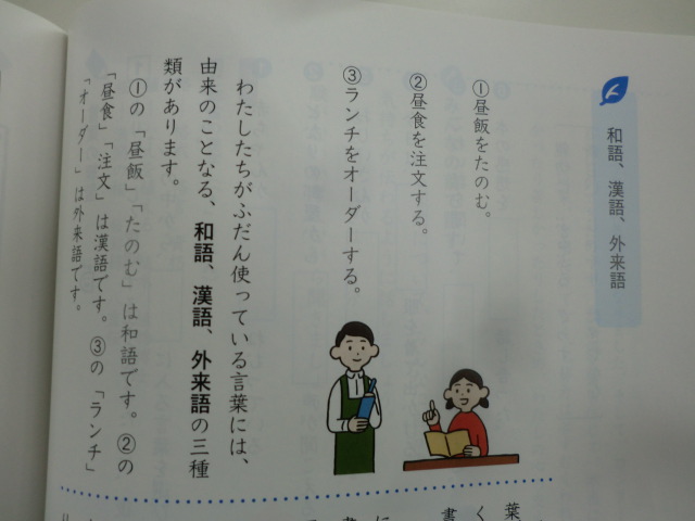 私たちが普段使っている言葉には、由来となる和語、漢語、外来語の三種類があることを学ぶ時間です。日本語だと思って使っている言葉でも、世界の国から影響を受けて使われるようになったことを知ると、語彙力が高まりそうですね。