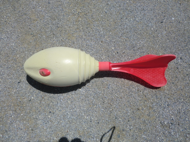 今日は、不思議な形をした用具を使いました。投げた軌道がきれいな放物線になると「ヒューッ!」と笛を吹いたような音が鳴ります。ゲーム感覚で、楽しみながら運動する姿がありました。