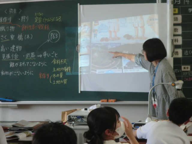 2つの時代を比べて、衣食住の様々な違いを見つけた6年生。その中で、矢じりによって死んだと思われる化石から課題が。