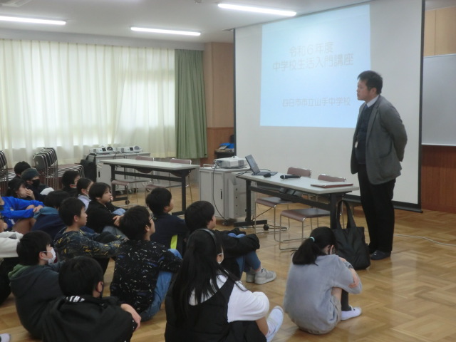 山手中学校からお二人(教頭先生と3年生担任)をお招きし、中学校生活について話を聞く機会を持ちました。