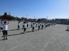 「気をつけ」や「れい」の姿勢、移動、ラジオ体操、スローガンの発表などの練習をしました。