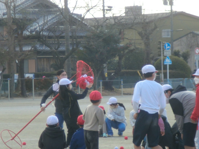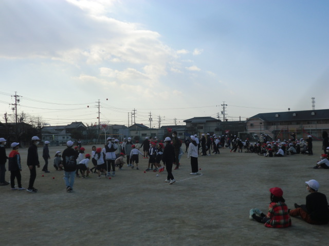 きょうだい学年として、遠足を共にするなどこれまで活動してきました。今日は、リクレーションとしての玉入れ。