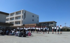 明日(6月4日)に迫った陸上記録会。今日は最後の練習日となりました。選手を応援しようと、6年生全員から「がんばれーっ!」の激励の言葉がありました。これまでの練習の成果が出るよう、素晴らしい競技場で、自分の目標に向かって頑張ってくださいね。
