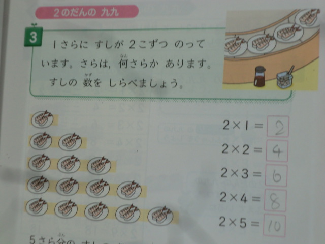 比較的なじみやすい5の段に続いて、2の段の勉強。