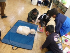 音声ガイダンスを聞きながらその指示に従い、救急救命法を学習しました。