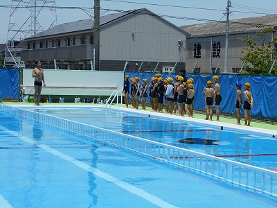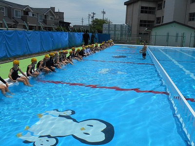 3年生では、例年オリンピアスポーツの二人のコーチも指導にあたっていただきます。今日は、久しぶりの水に慣れるところからです。今後は自分の泳力を伸ばすことにつなげていきます。(