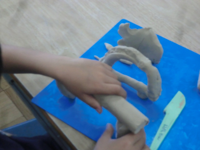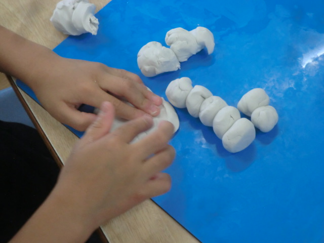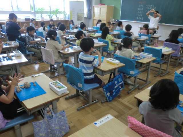ICT機器も使う1年生ですが、昔ながらの教材「粘土」を使ったモノ作りも、子どもたちの表情を生き生きとさせてくれます。