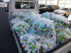 福祉委員会の呼びかけで、ペットボトルキャップの回収を1年間行いました。