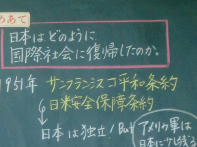 敗戦国となった日本が、どのように国際社会に復帰していったのかを6年生が学んでいました。