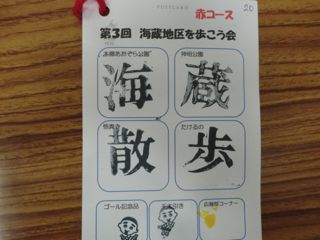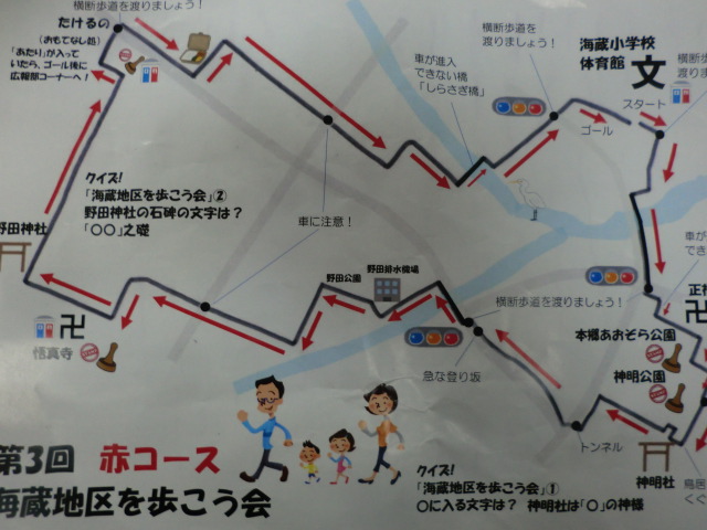 ゴールには、お楽しみ千本引きくじなど、大人も子どもも楽しめる満足感いっぱいの企画です。何よりも、海蔵地区の知らないことにたくさん気付ける楽しさがありました。主催者の方々、交通安全誘導等、ご協力いただいた方々、本当にありがとうございました。