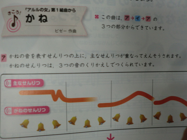 「旋律の重なりや音の強さに気を付けて聴きましょう」の課題に取り組みました。