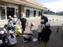 隙間時間に消防士の方にインタビューする姿もあり、主体的に学べた今日の防火防災教室でした。