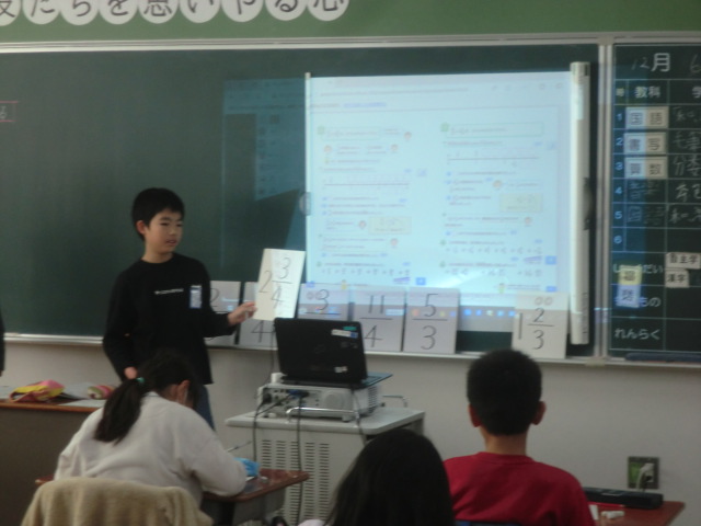 習ったことでも、大切な用語は意味を思い出してから、進むことは大切です。覚えていた人が丁寧に説明すると、「そうだった」「わかった」の声が上がります。素直にわからないこと、わすれたことを伝えあい、応え合うことは、学びの場で大切にしていきたいところです。4年生に学び合う空気が流れていました。