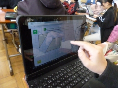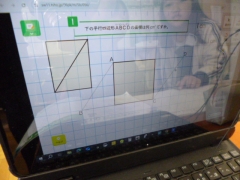 これまでは紙に印刷した問題を配付し、はさみで切って自分の考えをまとめましたが、今はタブレット上で形を切ったり、裏表回転、上下回転、左右回転をしながら自分の考えをまとめることができます。