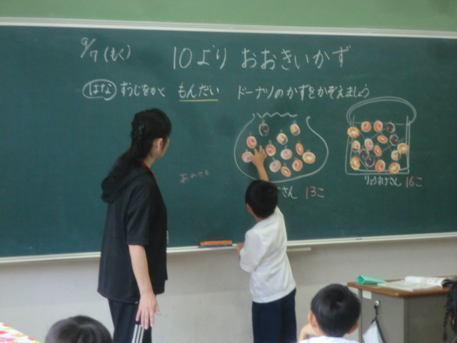 正確に数えるためにどんな工夫ができるのか、1年生が頭をひねってアイデアを出し合っていました。