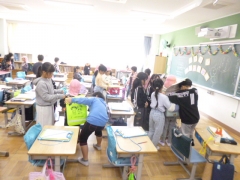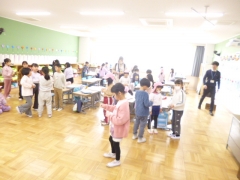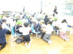 そこで、今日は、海蔵保育園、海蔵幼稚園、そして、海蔵地区にあるどんぐり保育園の5歳児(年長組)の子たちを招待し、小学校案内をしました。