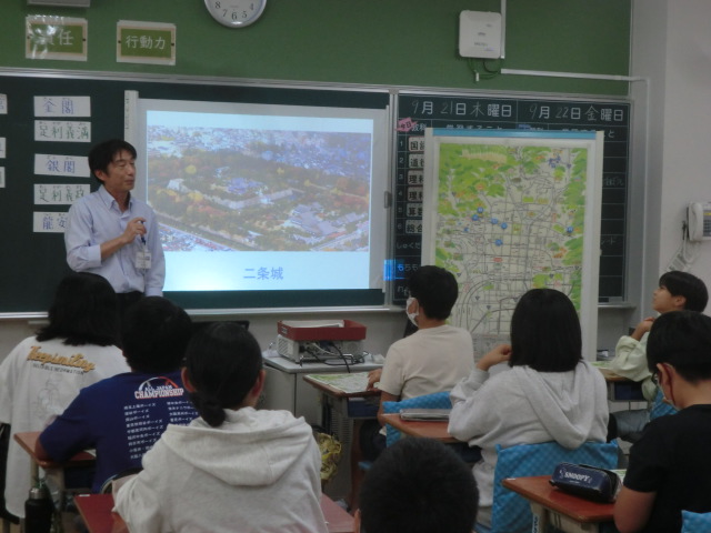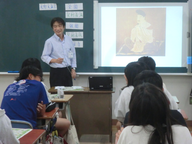 今日は、そのヒントになる基本情報を、6年生に紹介しました。金閣、銀閣といった有名どころから、方広寺など、教科書に出てきますが見落とされやすいものを地図上の位置を確かめながら確認していきました。