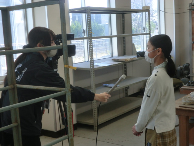 テレビ局CTYが取材に入り、インタビューにしっかり答えていた5年生代表。