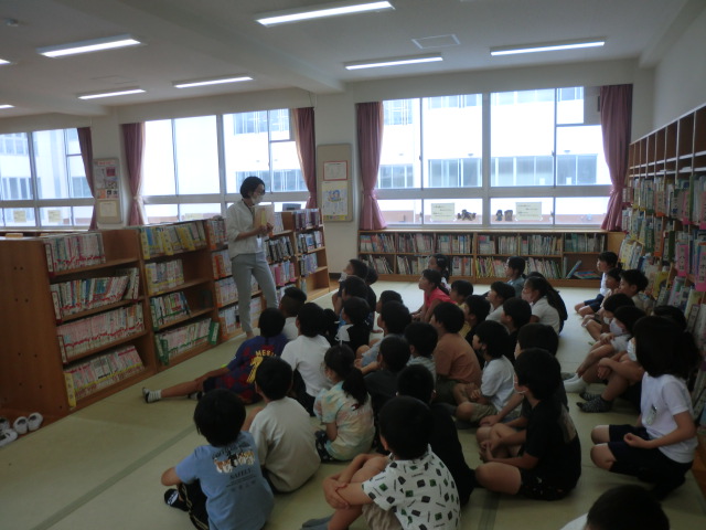今日は、休み時間に図書室で、司書による3年生への読み聞かせ。