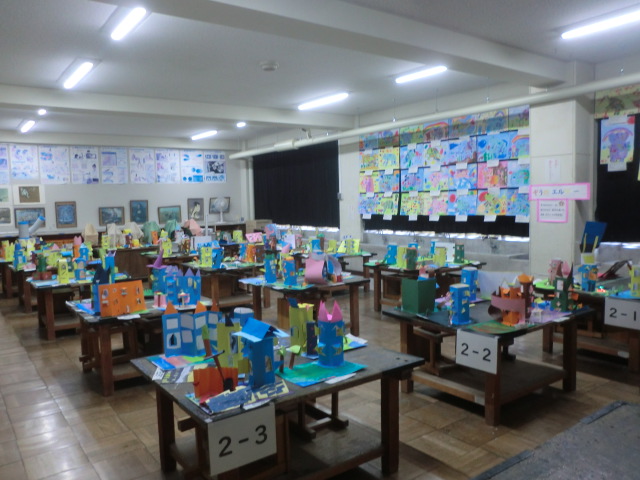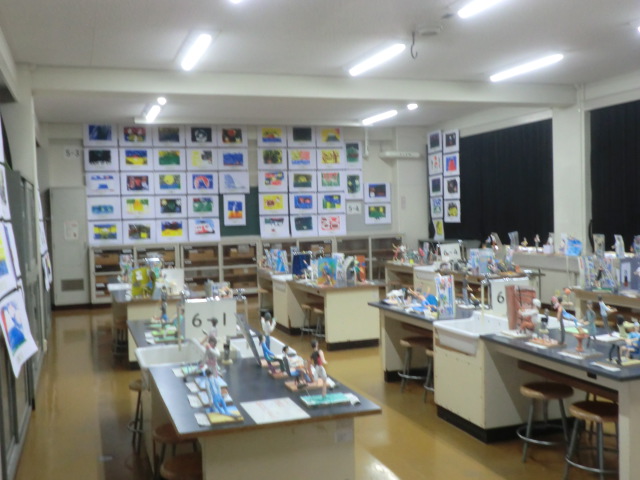 図工作品展を26日まで開催しています。子どもたちの様々な「創意工夫」「思い」を感じ取ることができます。どうぞご参観ください。
