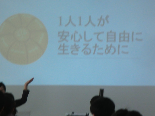 弁護士バッジデザイン(天秤、向日葵)に込められた意味を含めて、弁護士の仕事についてお話していただきました。