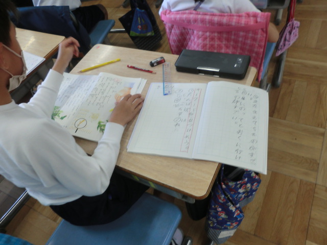 今日は、何度も出てくる言葉を探して読み取りの手がかりを作る学習を進めていました。説明の順序を学ぶことは、自分が説明する側になったときに応用できます。読み取りに集中している表情が見られた2年生です。
