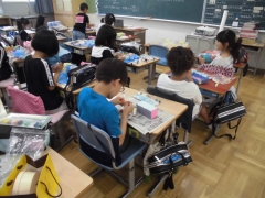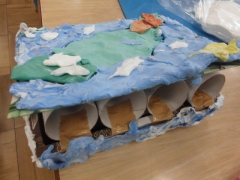 トイレットペーパーの芯やカプセルトイのケースを使った小物入れやペットボトルを材料にしたダイナミックな恐竜など、それぞれが工夫をして世界でたった一つの作品つくりに励んでいました。