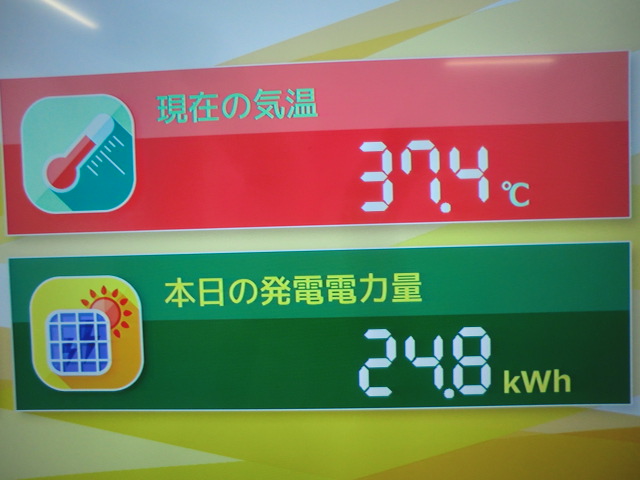 海蔵小の、太陽光発電システムの気温計でも、11時過ぎに37度を超える値が。