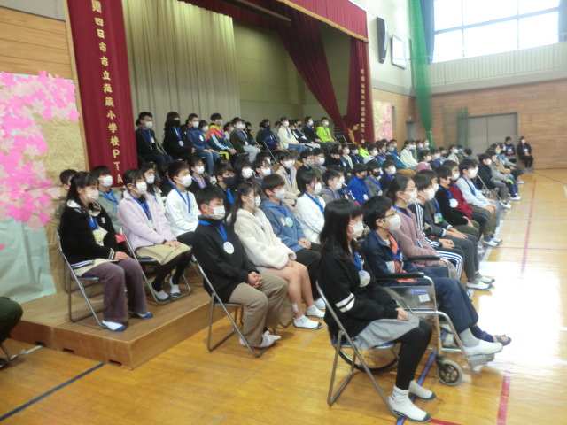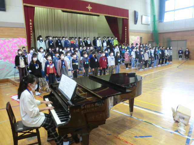 会の最後には、6年生からの合唱。保護者の方々には、卒業式で披露させていただく予定です。卒業式まで、残り授業日は16日となりました。