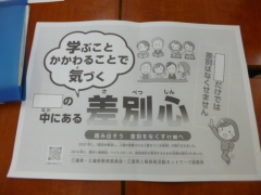 その後、「思いやり」以外に差別をなくしていくために何が大切なのかをみんなで考え合いました。