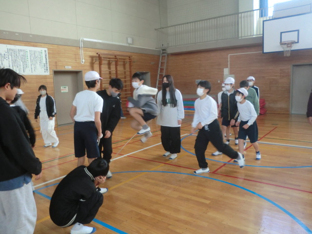 規定時間内で、何回8の字跳びができるかを競い合っていました。
