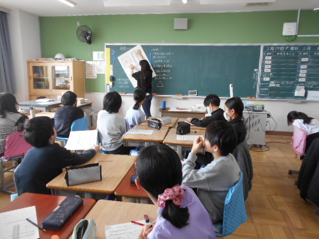 まずは、班で話し合いながら、課題を解いていきます。対角線を引こうとしたり、三角形を見つけようとしたり、子どもたちはこれまで学習した内容をフル稼働し始めます。