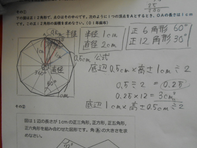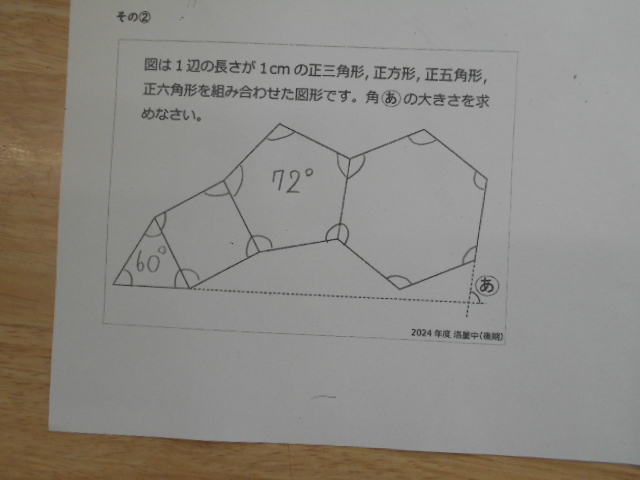そこが、この課題のねらいです。対角線を引いてみて考える、ふと隣の子と自分の考えを見比べてみる、「なんで、ここは120度なん?」と対話が始まり、他者と関わりながら考えを深めていきます。