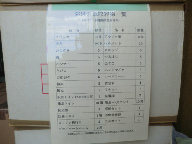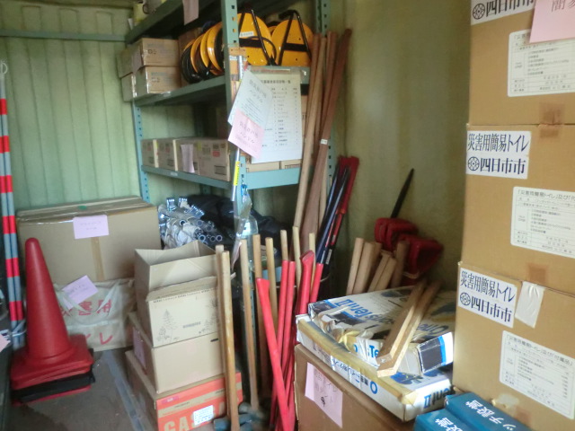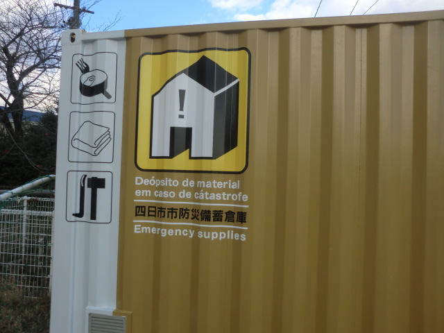 海蔵小学校運動場北側にも、防災倉庫が設置されています。収納物等の管理は四日市市危機管理室が担い、必要に応じて活用されることになっています。自助・共助・公助がバランスよくできるよう、日頃から意識していきたいと思います。