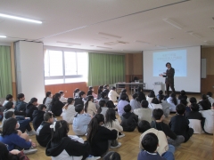 今日は山手中学校の校長先生と生徒指導担当の先生に来ていただき、中学校生活についてお話をしていただきました。マナーや言葉遣い、あいさつ、整理整頓などのお話を聞き、自分は今どれだけできているのかを振り返っていました。また、中学校の行事についても教えていただき、自然教室や体育祭、文化祭など、これから始まる中学校生活のさまざまな行事を心待ちにしているようでした。ここから卒業まで充実した1ヶ月を過ごし、気持ちよく4月の中学校入学式を迎えましょうね。