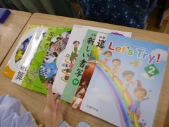 新しい教科書のページをめくりながら、今年どんなことを勉強するのかとても楽しみな様子がありました。